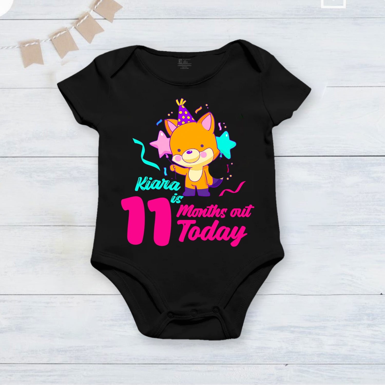 11th Month Of Love and Happiness Black onesies With Customized Baby Girl Name
