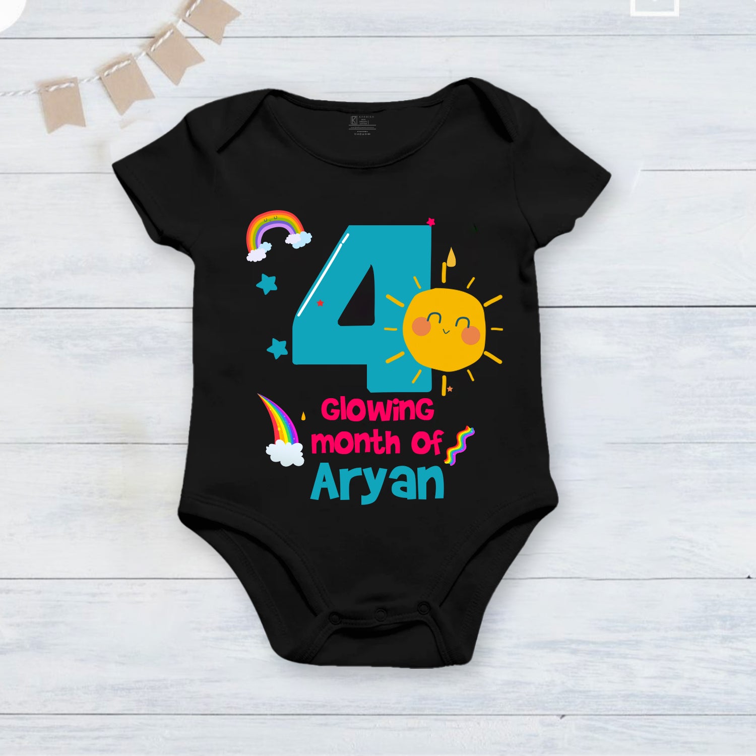 4th Infant monthly birthday_ With Customized Baby Boy's Name Stylish Black Onesies