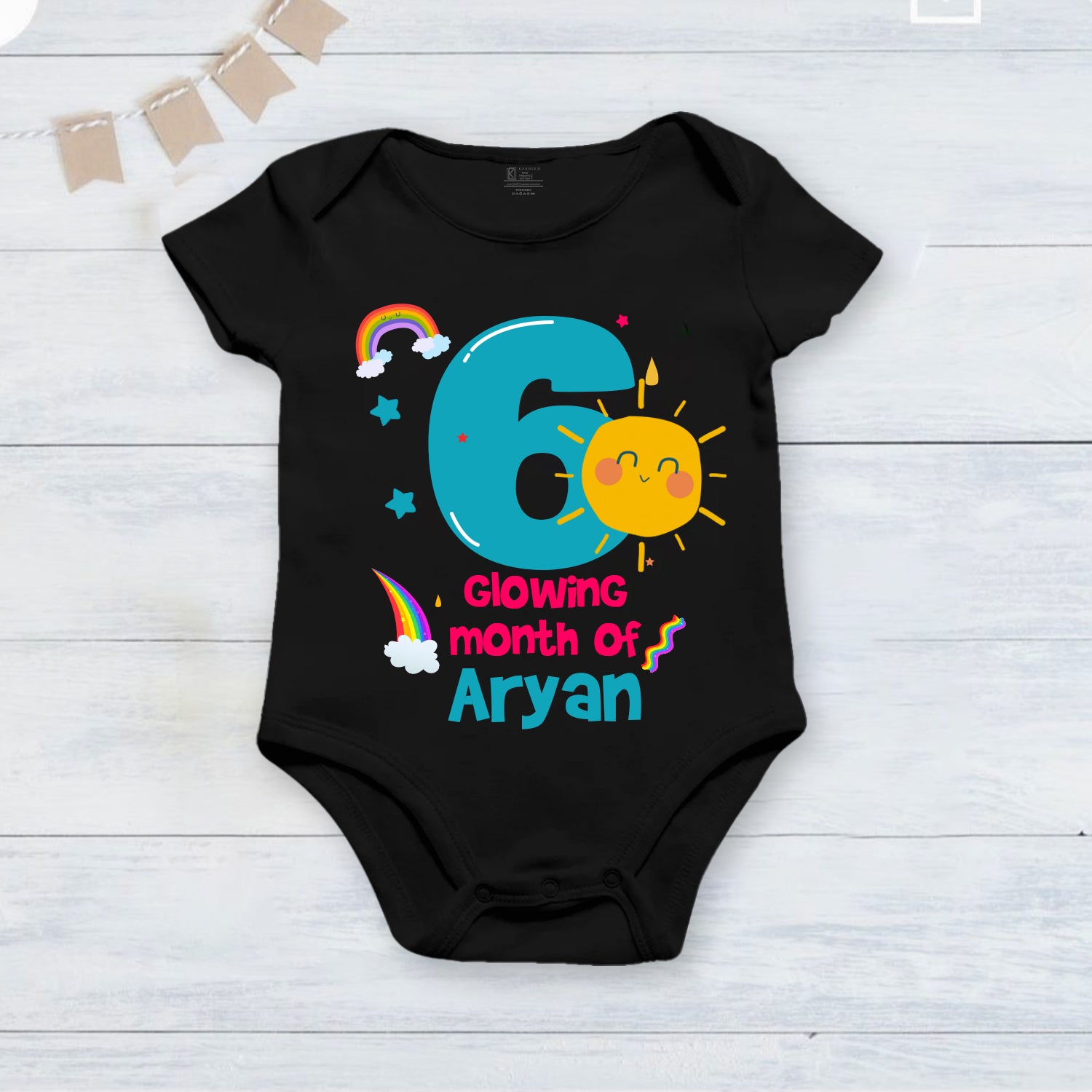 6th Infant monthly birthday_ With Customized Baby Boy's Name Stylish Black Onesies