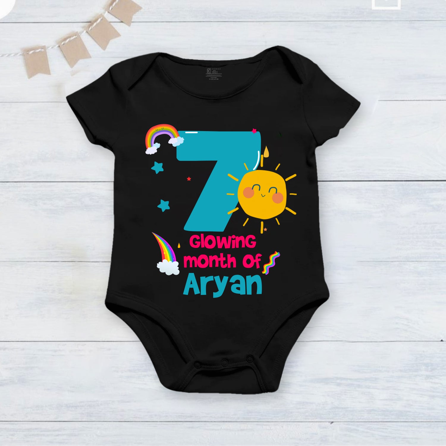 7th Infant monthly birthday_ With Customized Baby Boy's Name Stylish Black Onesies