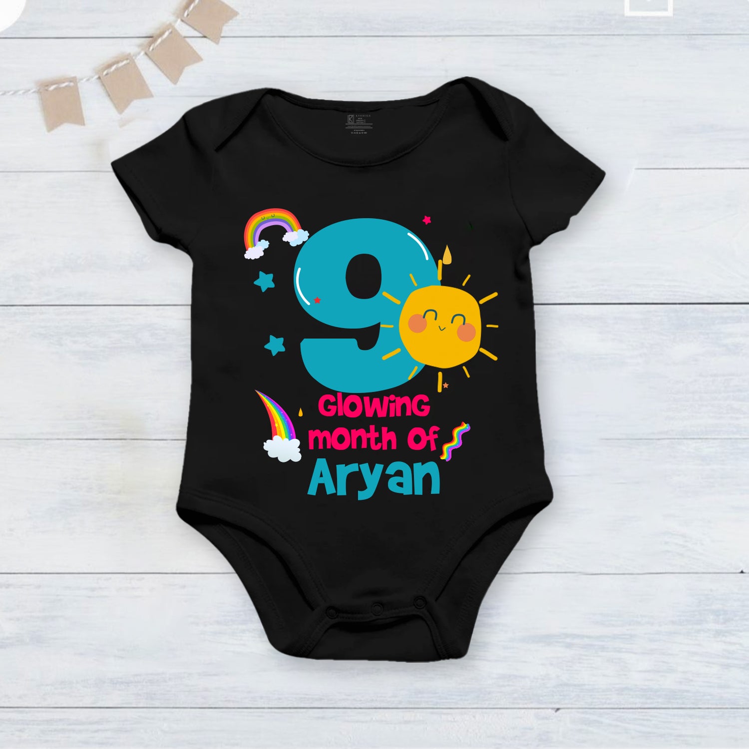 9th Infant monthly birthday_ With Customized Baby Boy's Name Stylish Black Onesies