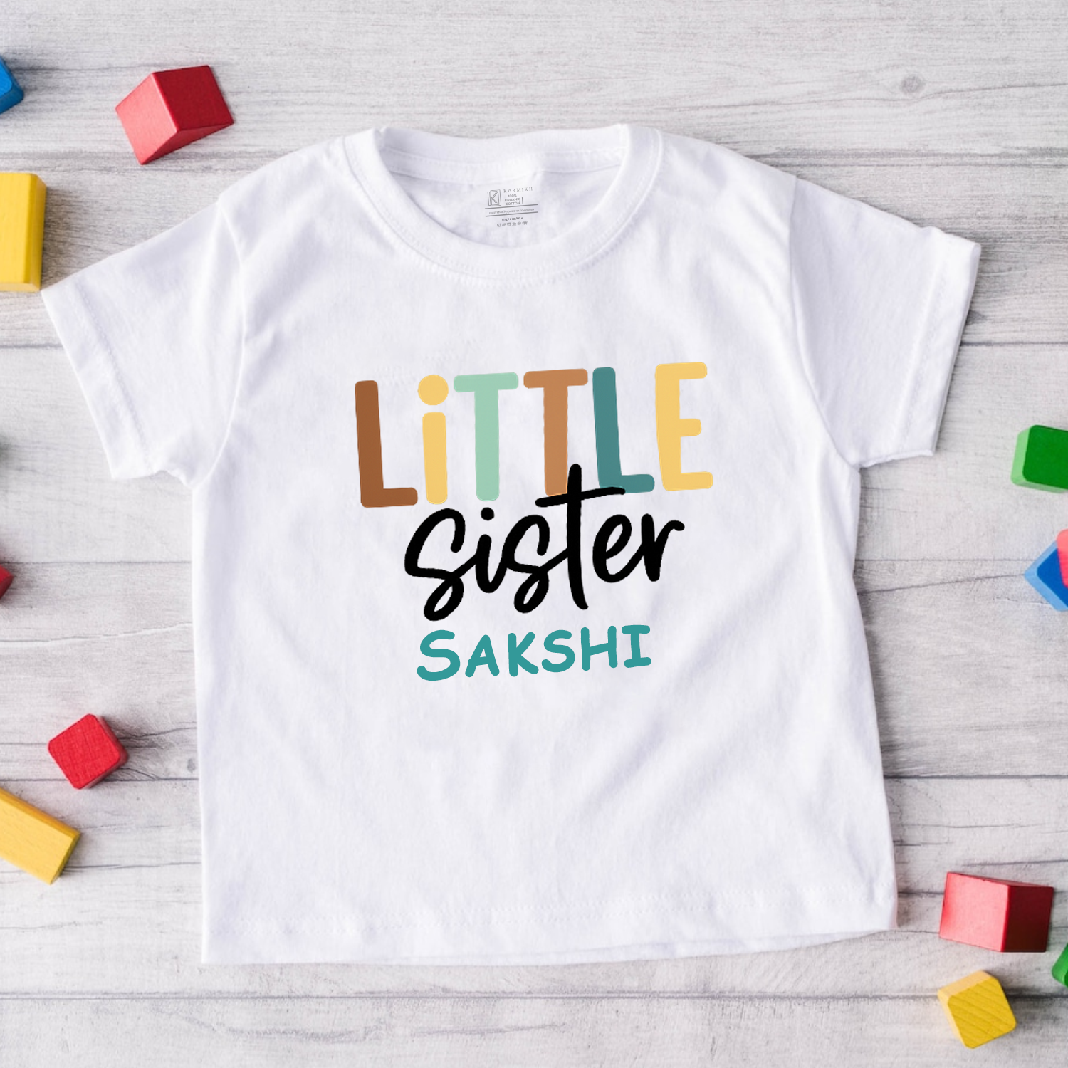 Little Sister customised with name _ White tee