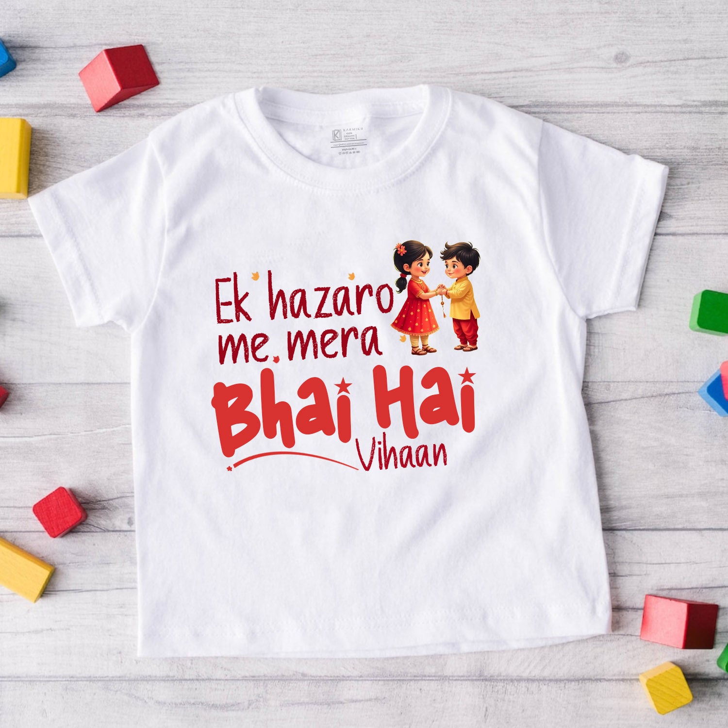 Ek Hazaro Mai Mera Bhai Hai _Customised Baby name White tee