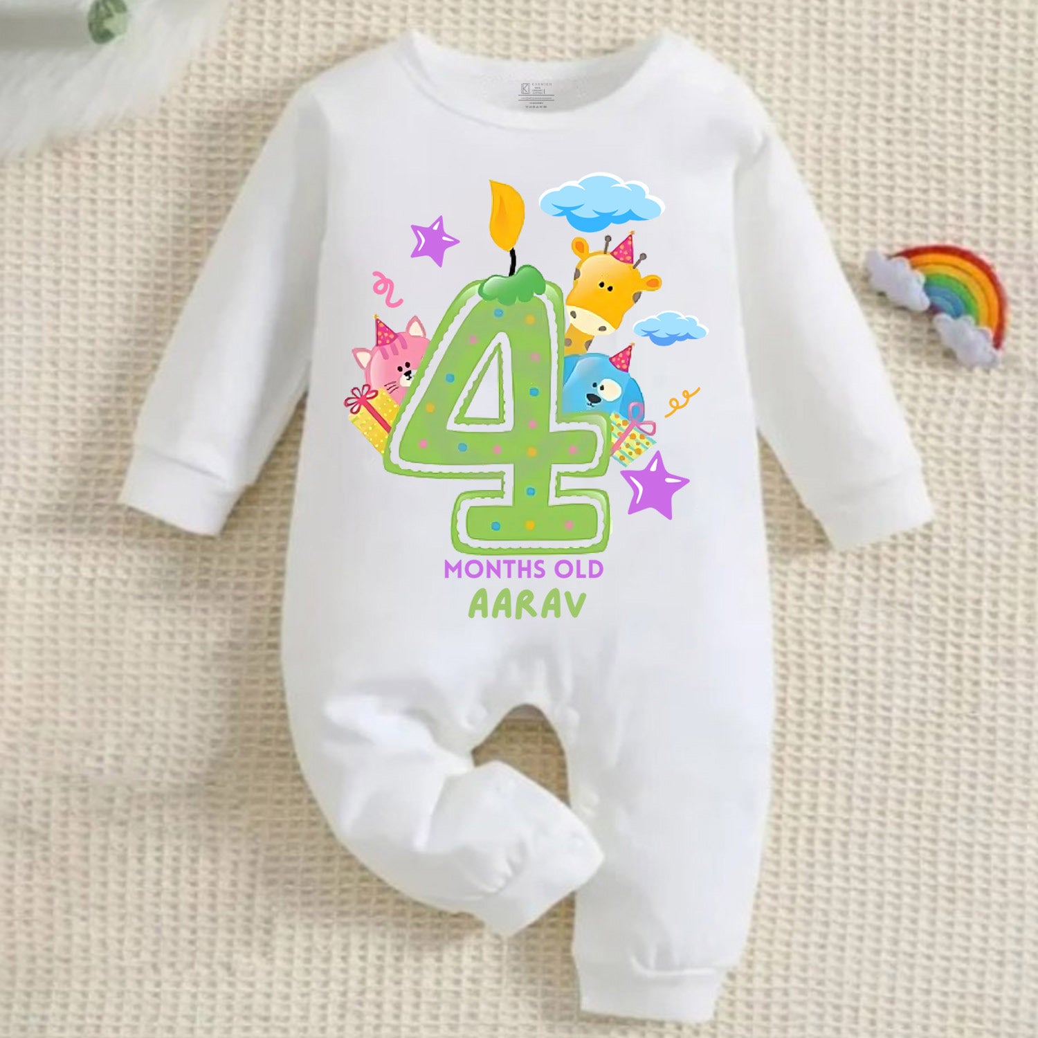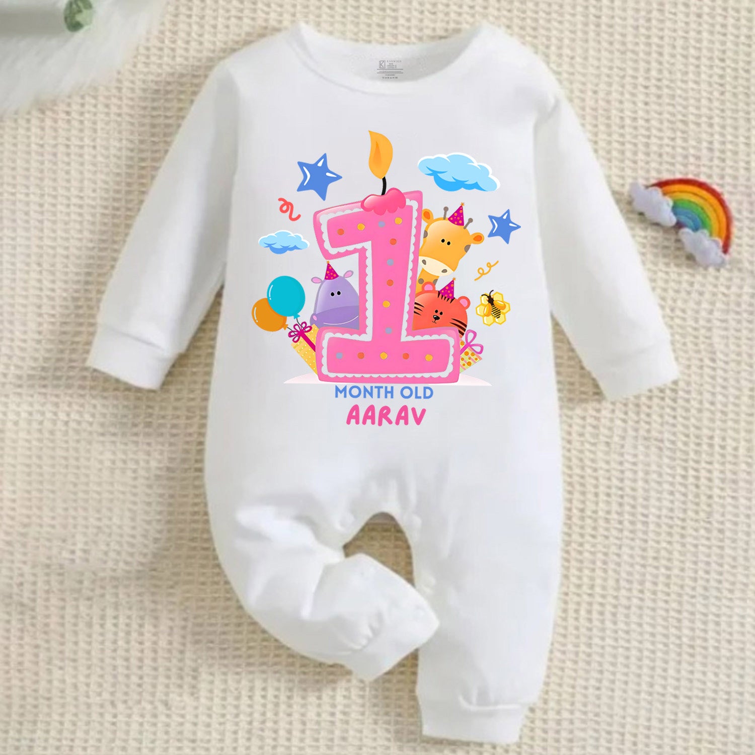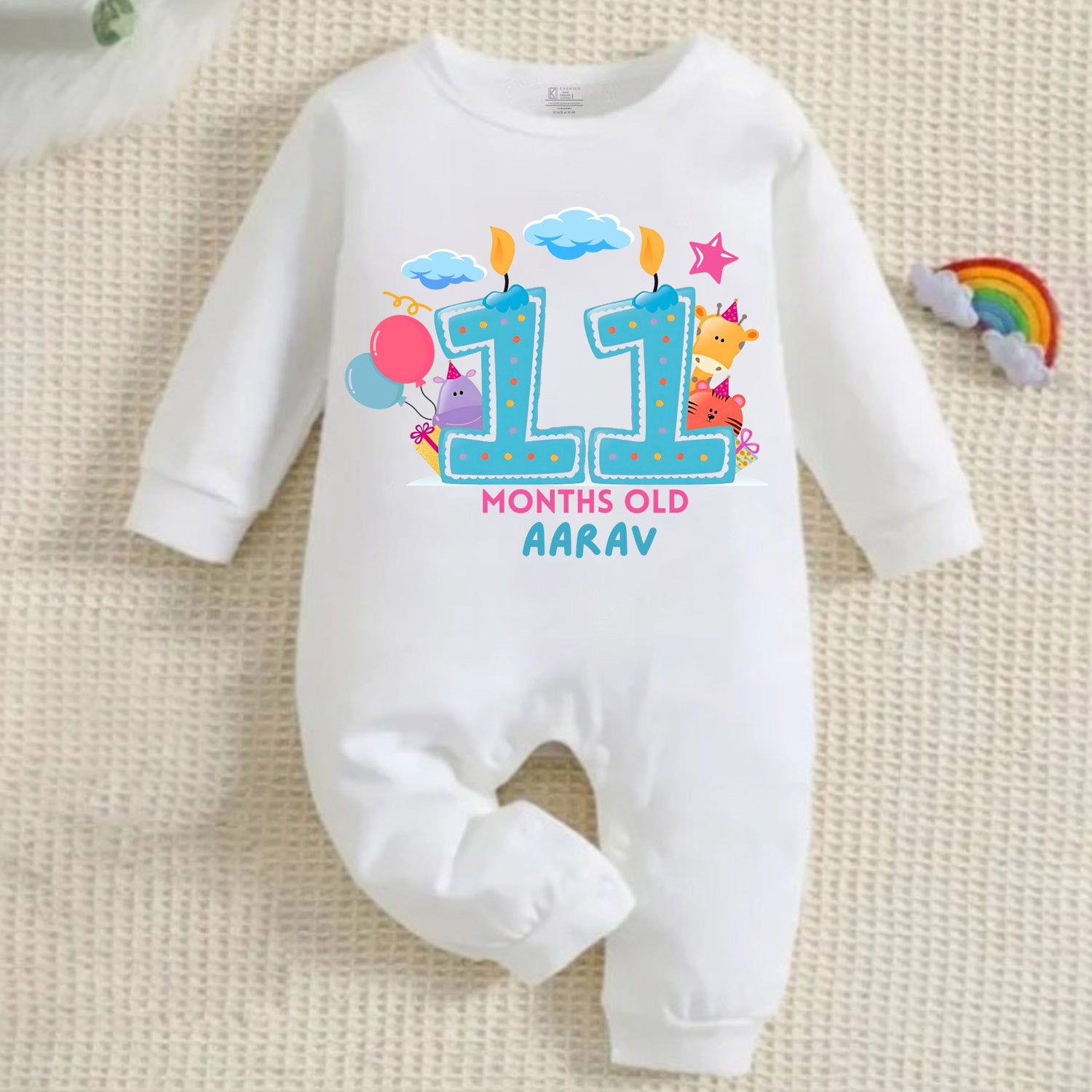 Infant monthly birthday Combo with customized name 12 Months of Love_ White Full onesies