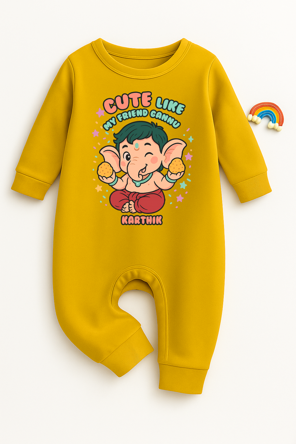 Cute Little My Friend Gannu with customised name_ Full Yellow Romper