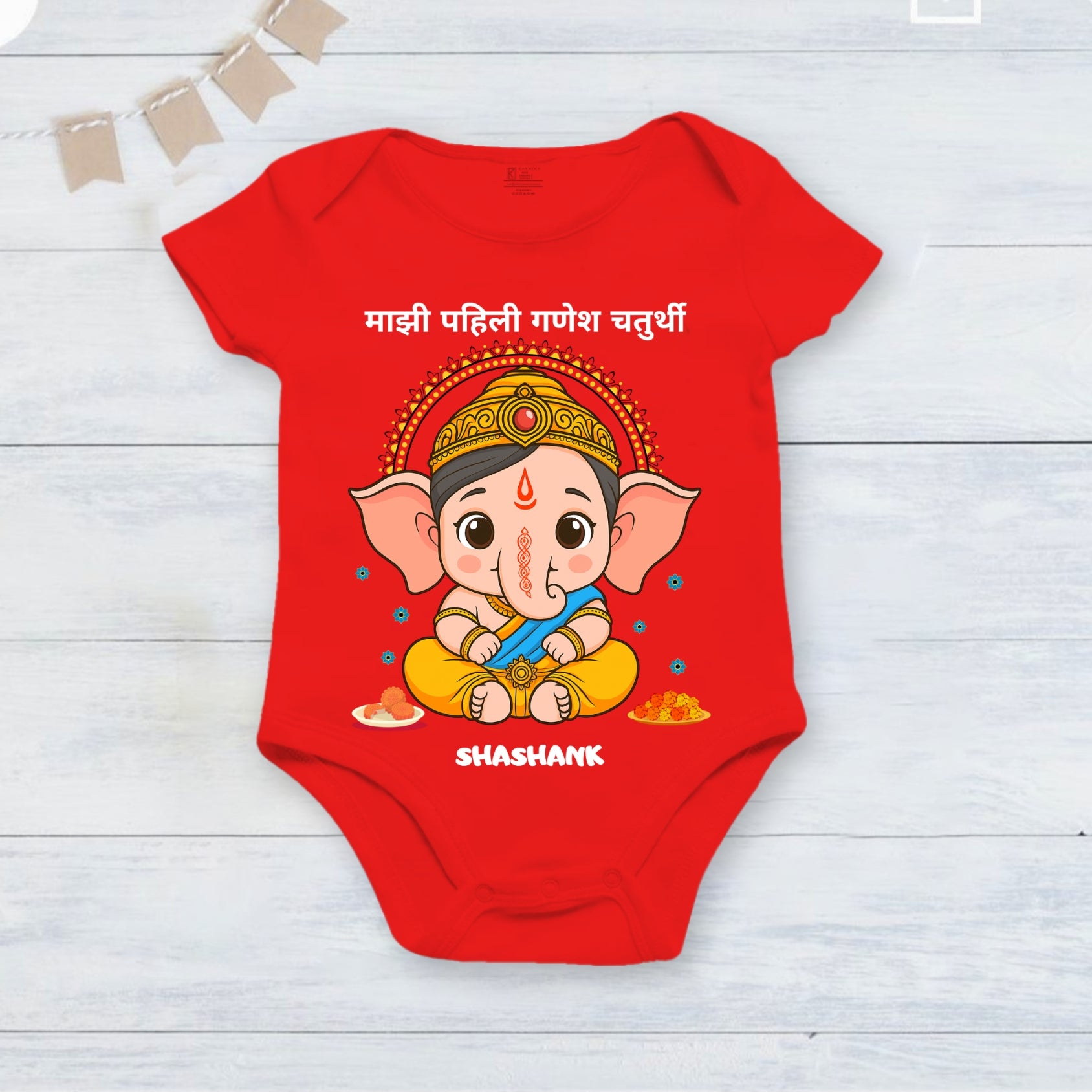 My First Ganesh Chaturthi in Marathi with customised name_ Red Onesie