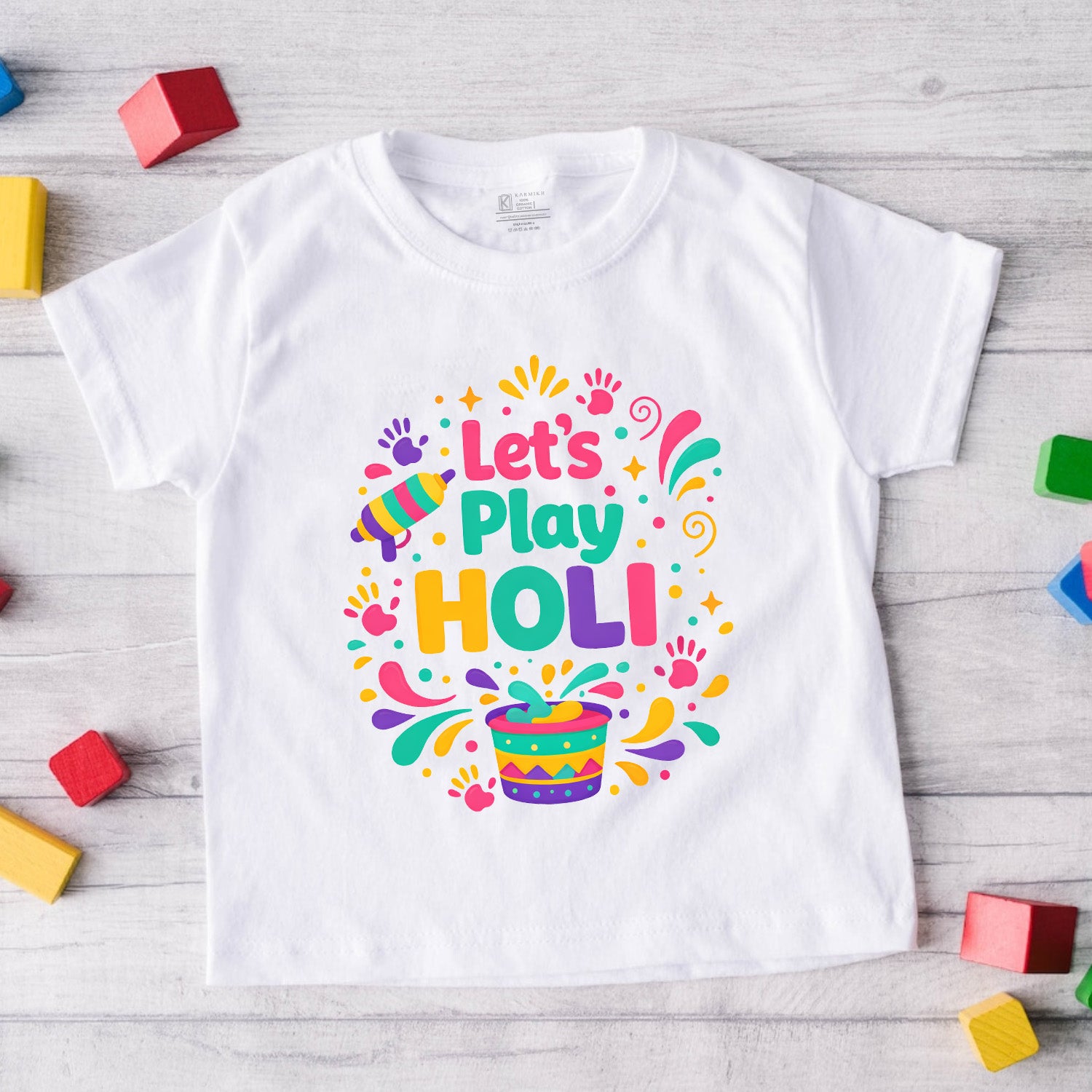New Born & Baby Clothing | Baby Let's Play Holi T-shirt With Customized Baby Name At The Back | Soft Cotton