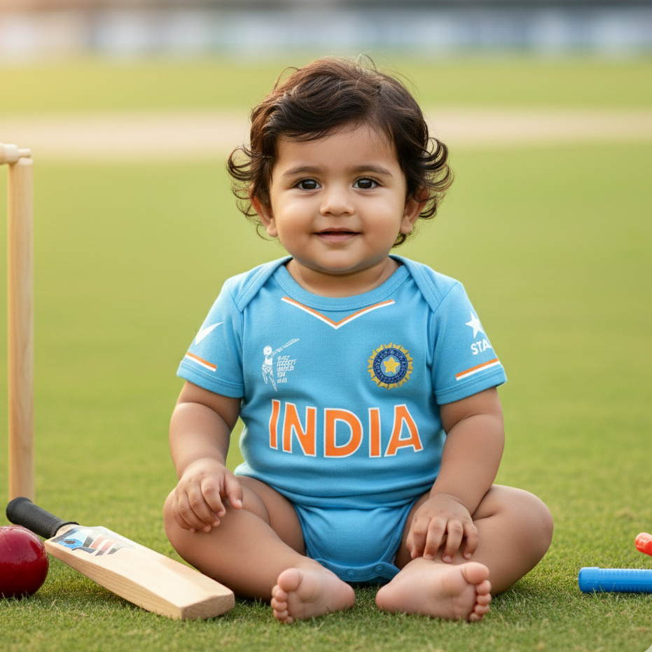 New Born & Baby clothing | Cricketer Blue jersey Baby Photoshoot Outfit for Baby with Customized Baby Name Printed | Soft Cotton