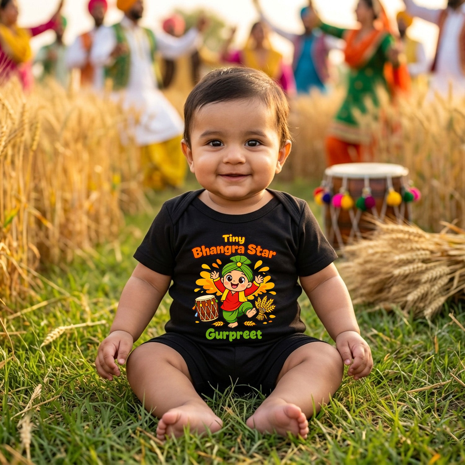 Celebrate the festival of Baisakhi with this adorable baby bodysuit designed especially for little ones. Inspired by the joy of harvest celebrations and festive traditions, this outfit adds a cheerful festive touch to your baby’s special day.