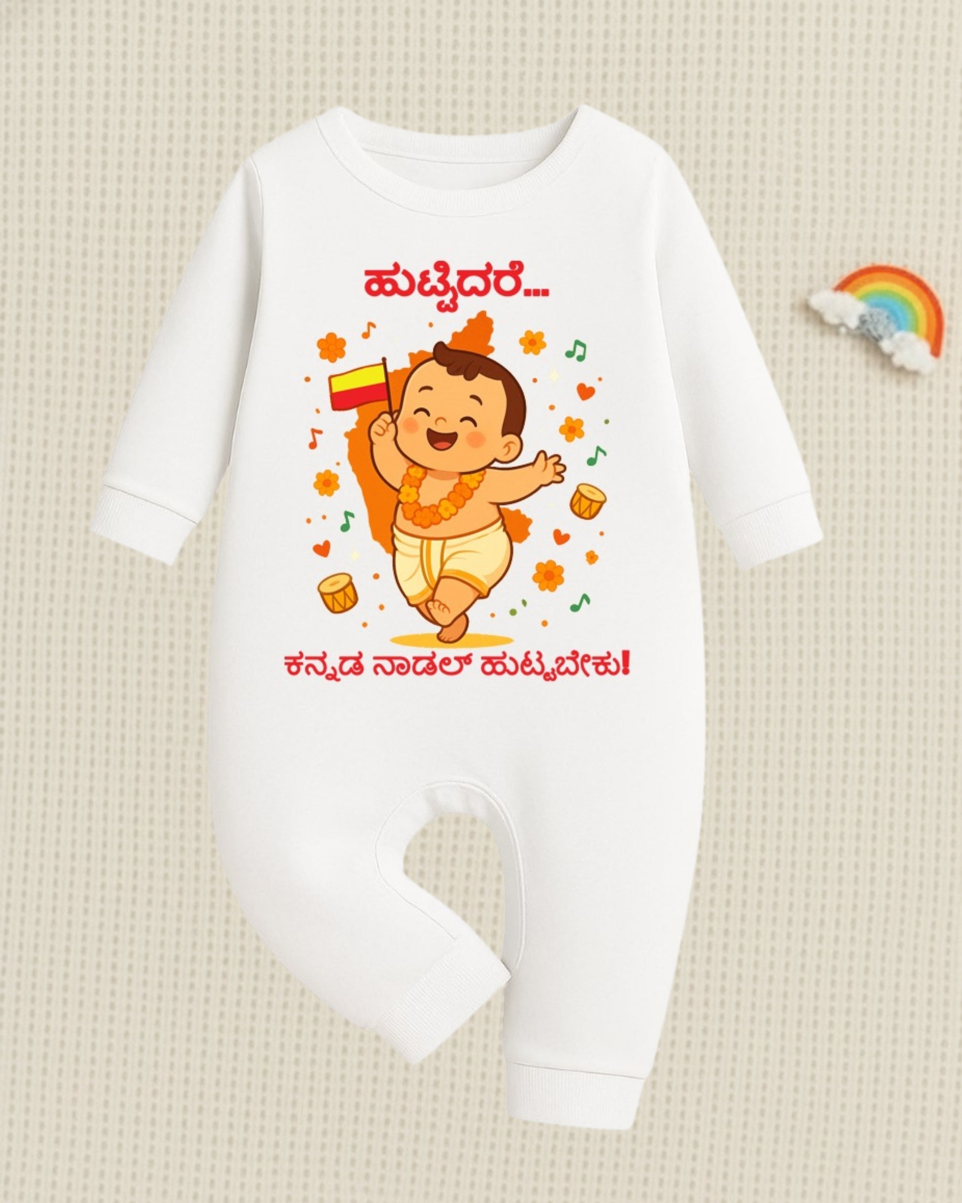 Huttidare Kannada Nadalli Huttabeku _ White Full Romper